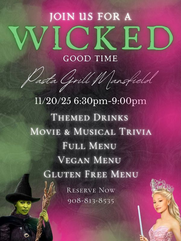 Get ready for a Wicked night at Pasta Grill Mansfield — themed drinks, dinner, trivia, and a costume contest you won’t want to miss.