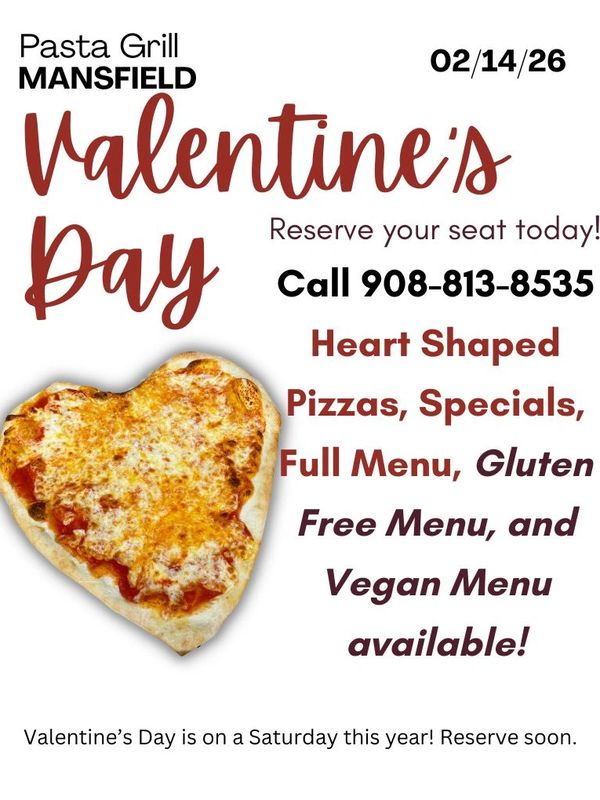Valentine’s day falls on a SATURDAY this year!! Don’t wait, book dinner at Pasta Grill now 908-813-8535