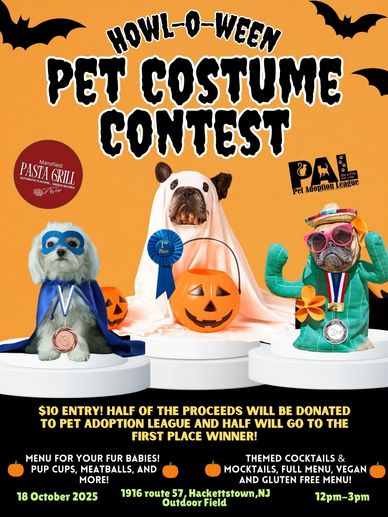 🐾🎃 It’s time to get spooky! Join us for our Howl-O-Ween Costume Contest — $10 entry, with half benefiting Pet Adoption League and half going to the best-dressed pup! 🐶✨ Meatballs for dogs, pup cups, themed cocktails & mocktails for humans, and a vegan/gluten-free-friendly event.